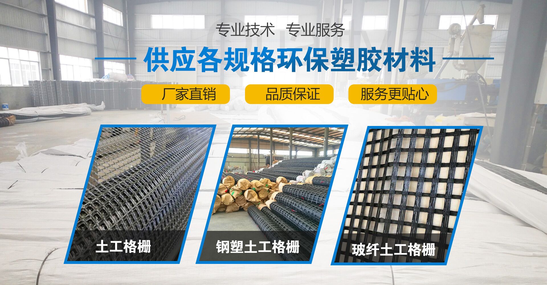 鋼塑土工格柵以高強(qiáng)鋼絲(或其他纖維),經(jīng)特殊處理,與聚乙烯(PE),并添加其他助劑,通過擠出使之成為復(fù)合型高強(qiáng)抗拉條帶,且表面有粗糙壓紋,則為高強(qiáng)加筋土工帶。由此單帶,經(jīng)縱、橫按一定間距編制或夾合排列,采用特殊強(qiáng)化粘接的熔焊技術(shù)焊接其交接點(diǎn)而成型,則為加筋土工格柵。